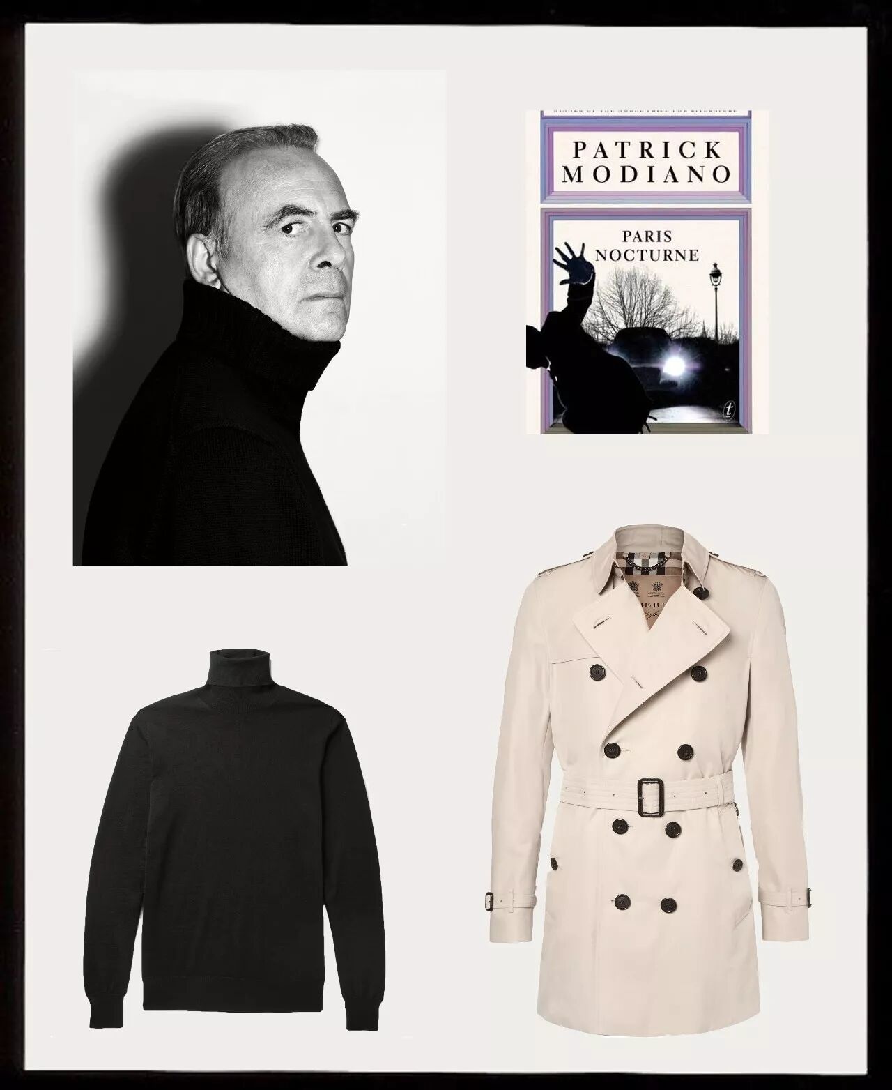 在莫迪亚诺的日常穿搭中,随处可见的便是风衣,大衣与高领毛衣的搭配,加上他年轻时的一头长卷发,是非常法式的不经意时髦。