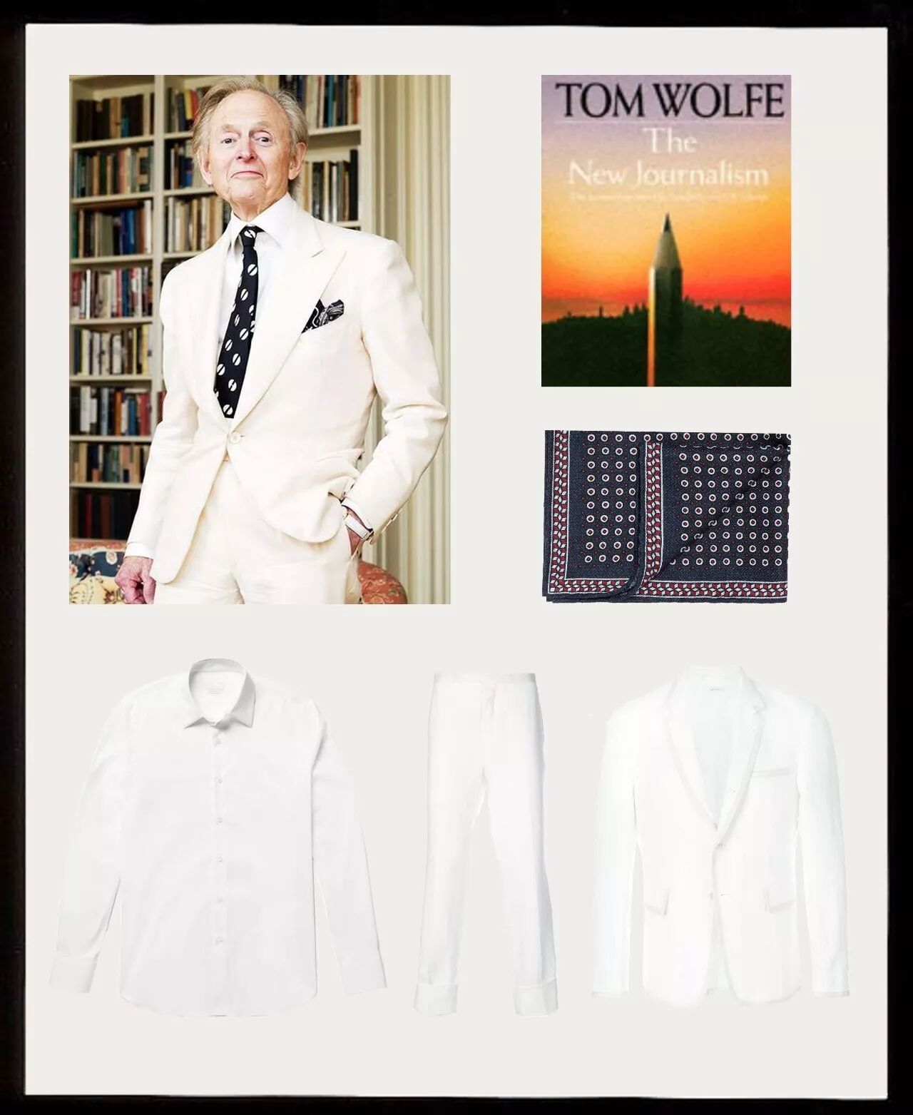 不过汤姆·沃尔夫与白西装的不解之缘,其实是一个因爱生恨的故事。上世纪 60 年代当时还在《纽约先驱报》做记者的沃尔夫,省吃俭用买了一套白色真丝斜纹西装 ,却让他在夏天大汗淋漓,就满怀怨气地做了一个决定:穿着它渡过整个冬天。