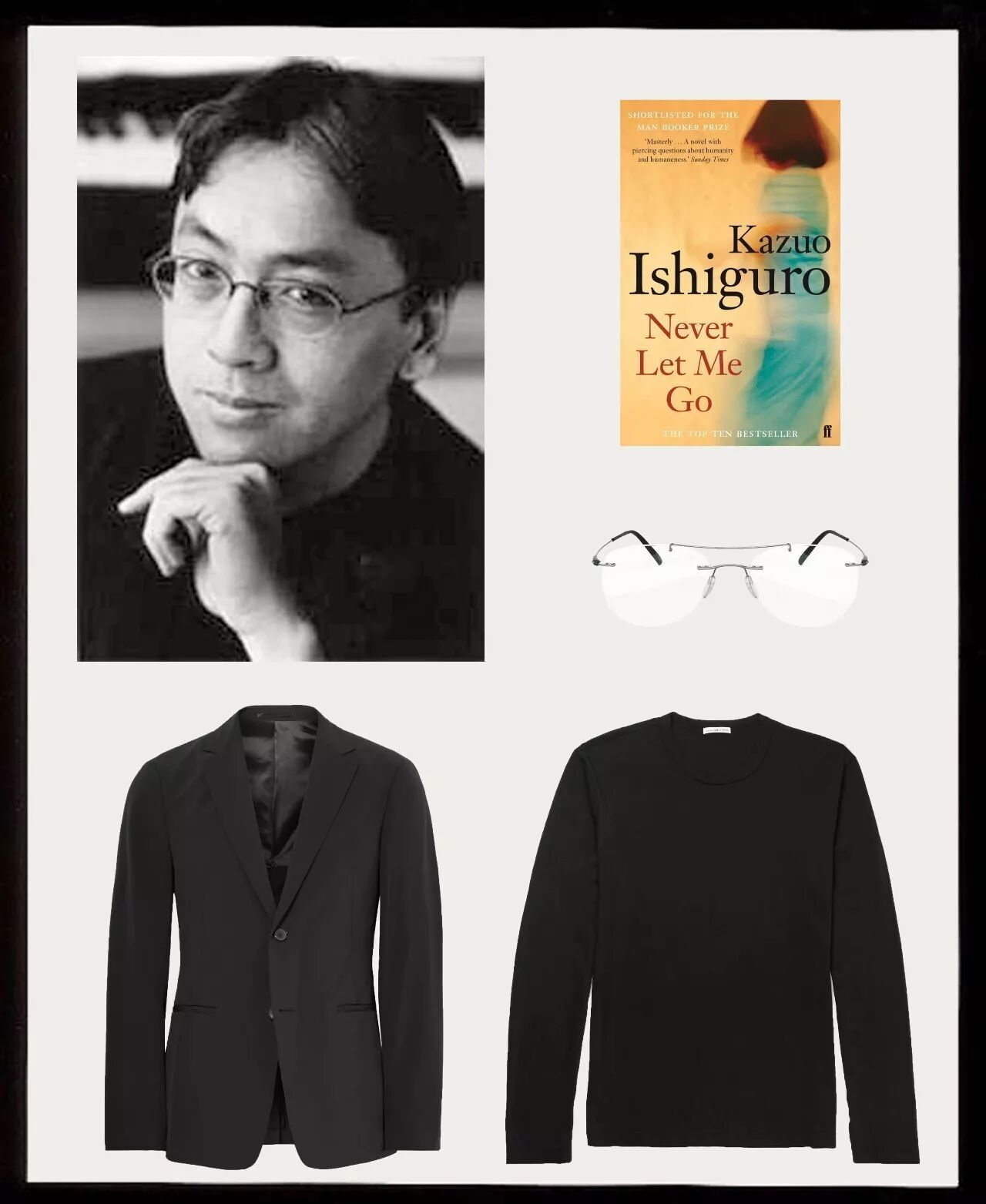 因为第二代移民的身份,从写作风格来说石黑一雄的写作极具英国式的克制端整,但也不乏日式美学那样素雅清淡的抽离感。他的穿衣风格也与之不谋而合,纯黑色的布雷泽外套,纯黑长袖 T 恤,加上一副眼镜,就是他这几十年里最有标识性的形象。