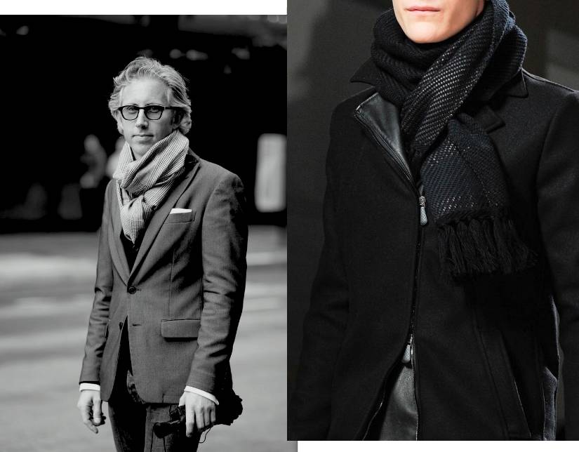 如果天气太冷的话,可以换上面料更厚的西装外套,加上一条同色系围巾即可。