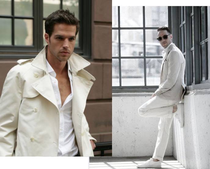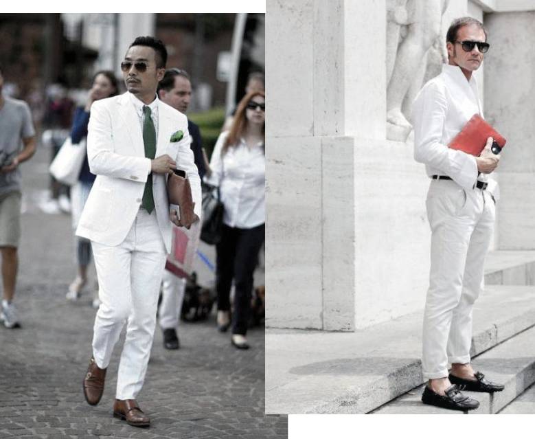 一身白这种略有些戏剧感的造型,并不是谁都能挑战,另一方面白色也比较显黑显糙,气质干净的智识型男人才能比较好地驾驭。