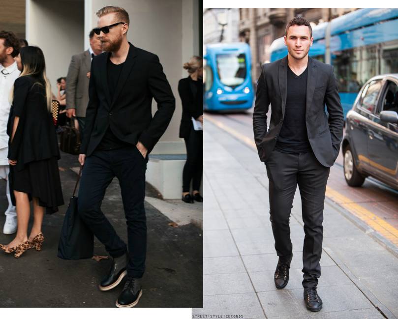 黑色布雷泽外套,低调又成熟的男人标配,如果你讨厌一尘不变又拘谨的西装外套和衬衫搭配,可以像石黑一样内搭同色 T 恤,打造你的标志性上班 look,看起来也是非常犀利有型的。